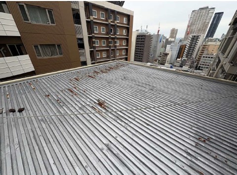屋上の折半屋根の一部に錆が見られ、「このまま放置すると穴が開き、雨漏りにつながるのではないか」とご心配されてご相談をいただきました。