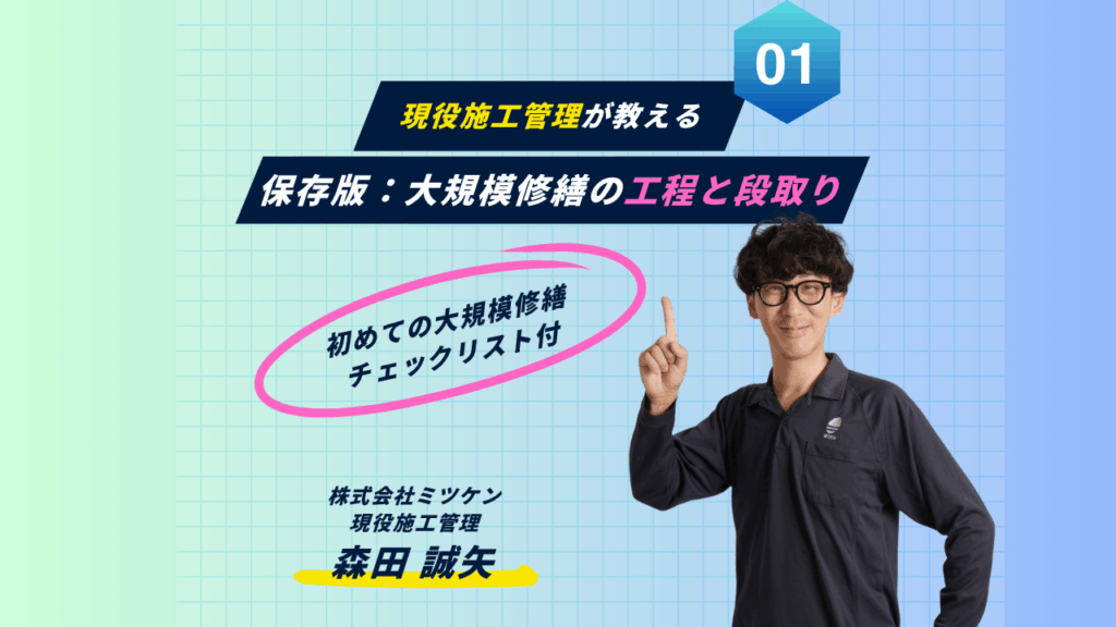 この記事の監修したのは… 株式会社ミツケン 施工管理課 課長 森田 誠矢(もりた せいや) ミツケンで施工管理を担当しており、外壁や防水、塗装などの品質管理や、 オーナー様・管理会社様との打ち合わせまで幅広く携わっていま … 続きを読む 【保存版】大規模修繕の工程と段取り