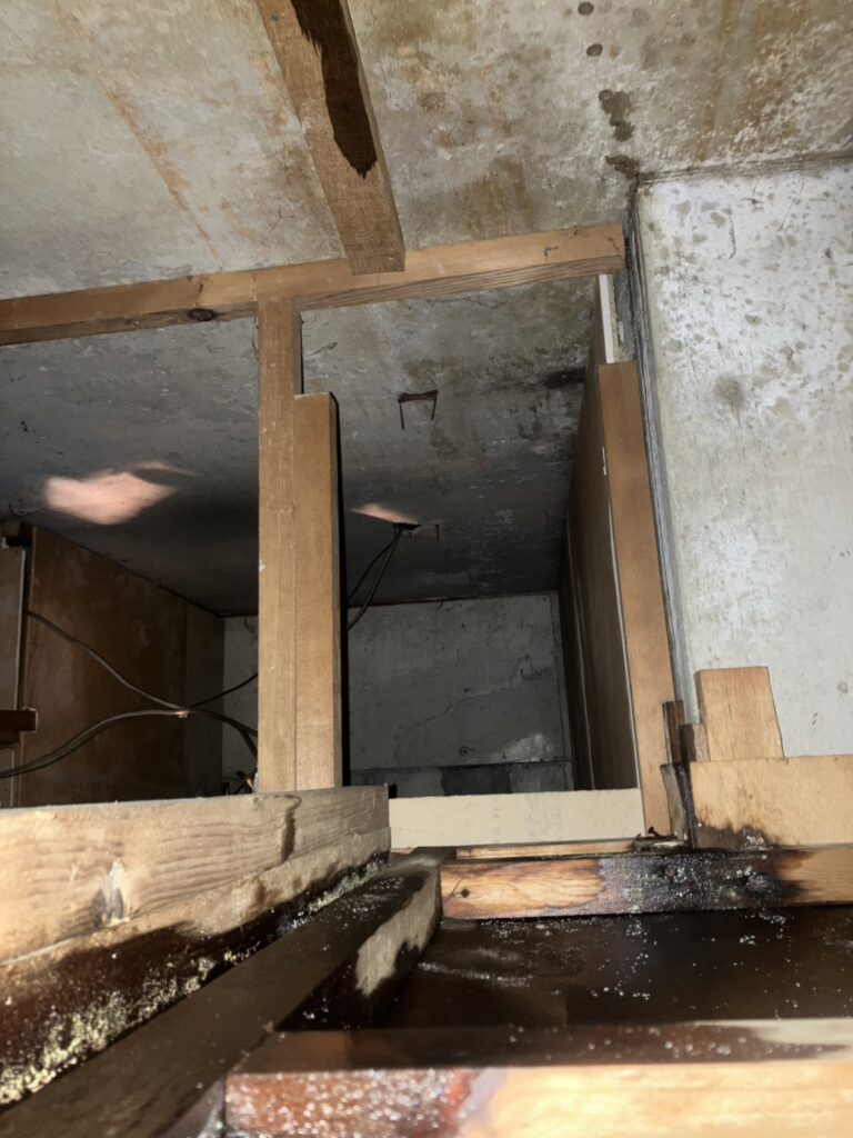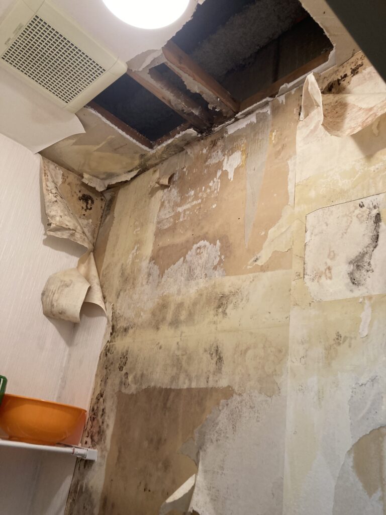 管理会社が入っている建物であれば、定期点検や大規模修繕のタイミングで対応することが多いですが、 個人オーナーの場合は屋上に上がる機会も少なく、実際に雨漏りして初めて劣化に気づくケースがほとんどです。 雨漏りを放置しておくと、壁を伝って雨水が入り込み、内装まで傷んでしまうことも。