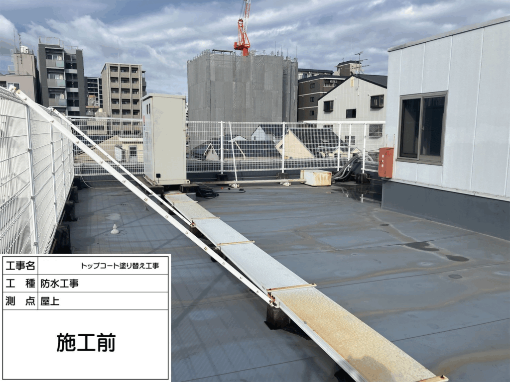 たとえば、既存がゴムシート防水の場合、ウレタン防水との相性が悪いため、全面撤去が必要になることもあります。